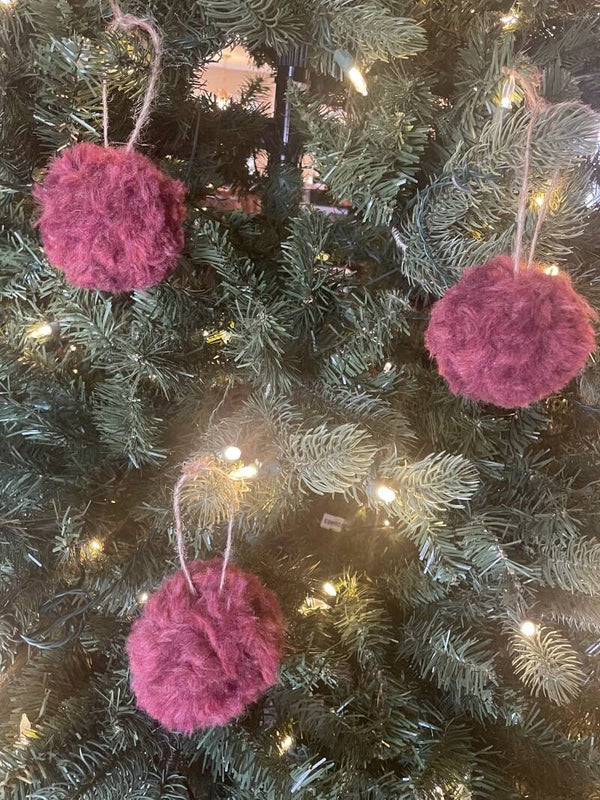 Individual medium yarn pom (3 inch diameter) with jute string. Perfect for gift wrapping presents or hanging on the tree!