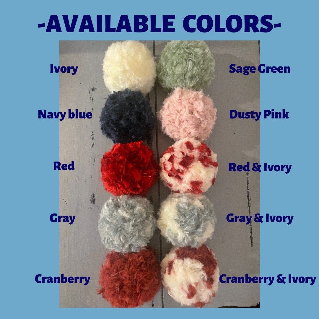 Individual large pom (4 inch diameter) with 2 wooden beads, tied with jute string. Perfect to hang on your tree, doorknob, or anywhere!